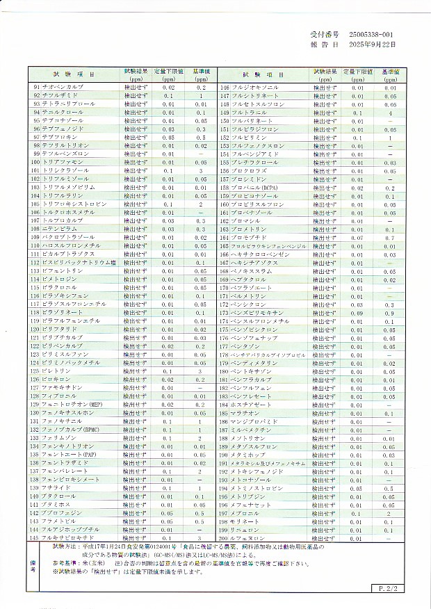 ★残留農薬検査 200項目 すべて不検出