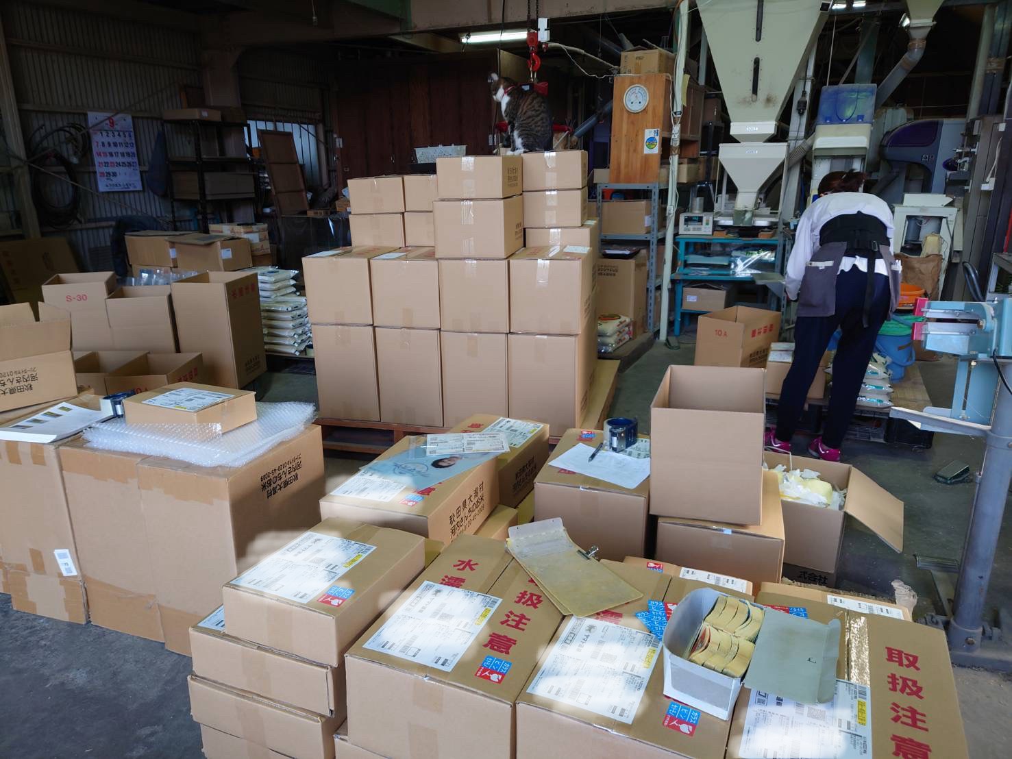格納庫では残りの家族が(写真の時は運送会社さんも)、息を切らしながら発送作業をしております。