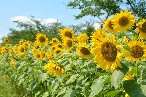 大潟村の「ひまわりロード」は、(春は「菜の花と桜ロード」になります!) 約11kmにわたりヒマワリが夏の太陽の下で元気に咲き誇り、ドライバーの目を楽しませてくれます。